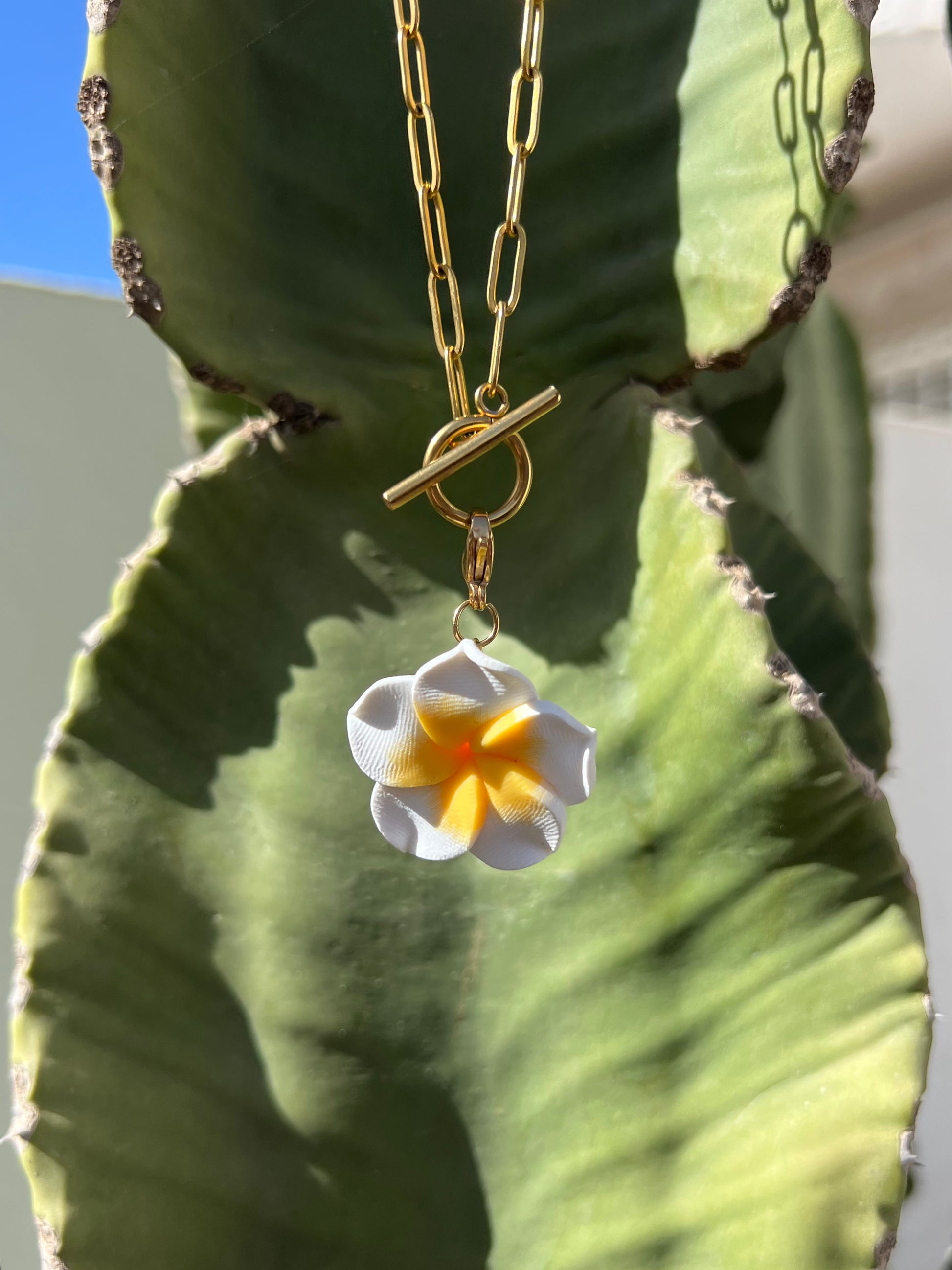 Charm de flor de FIMO. Cierre dorado de acero inoxidable. No incluye la cadena.