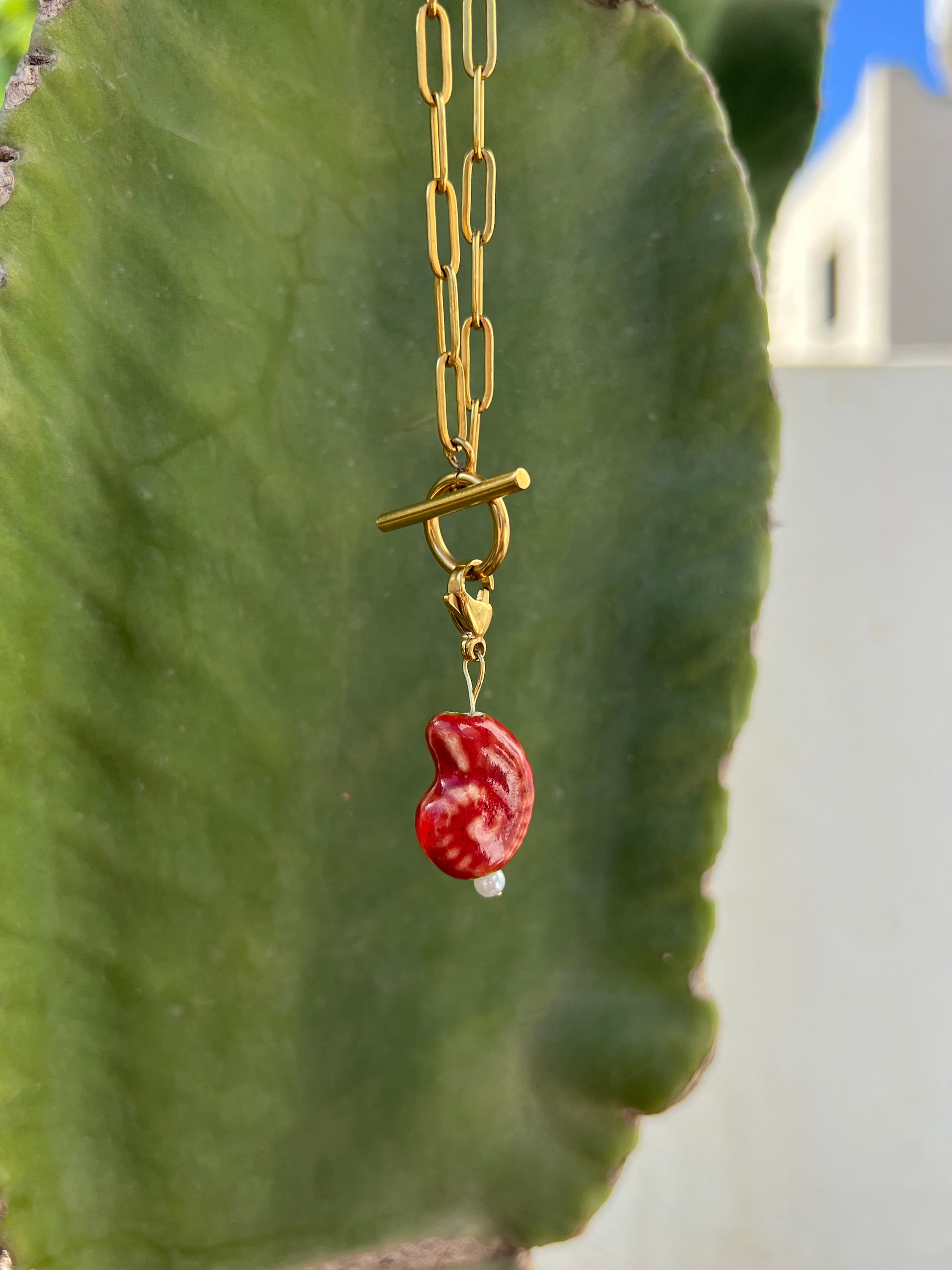 Charm de shell de cerámica. Cierre de acero inoxidable. No incluye la cadena.