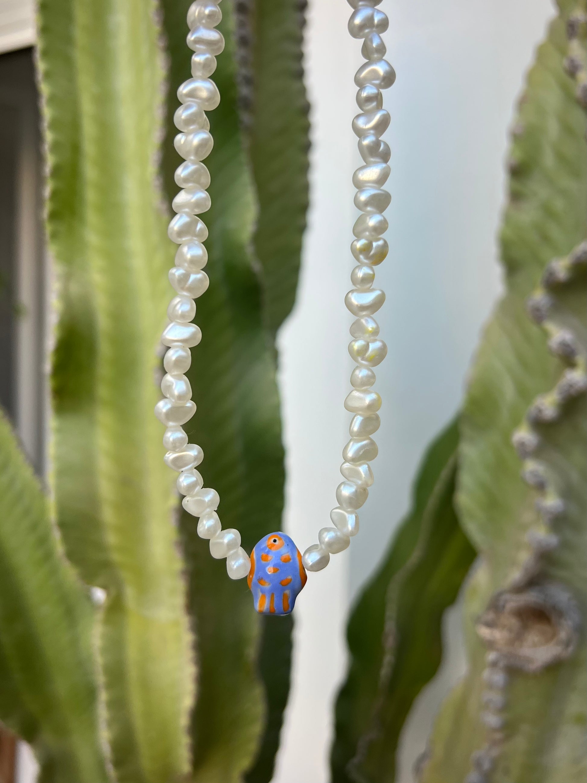 Collar con perlas. Pez de cerámica. Cierre dorado ajustable de acero inoxidable. Medida: 37-43 cm (cierre ajustable).